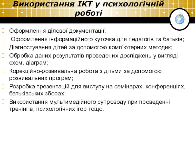 Використання мультимедійного супроводу при проведенні тренінгів, психологічних ігор тощо.