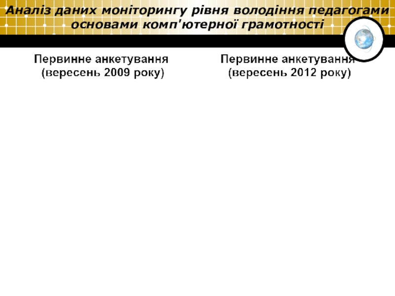 Слайд 21Аналіз даних моніторингу рівня володіння педагогами основами комп'ютерної грамотності
