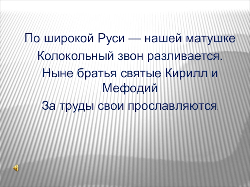 «Живут на огромных территориях славянские племена, а письменности своей не имеют. Почему? Ведь их же просвещать надобно! Надо донести до них силу слова Божьего на их родном языке».