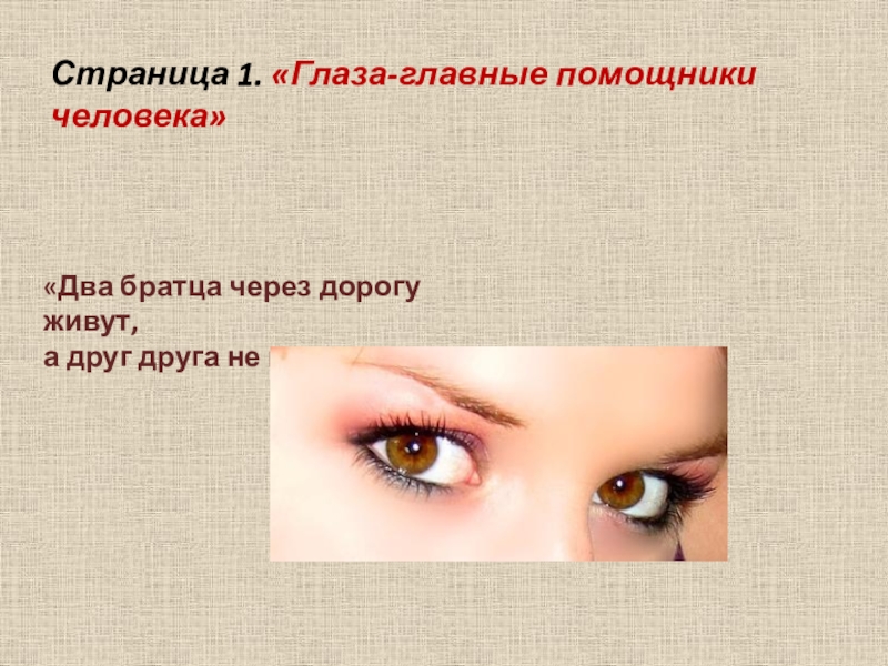 «Два братца через дорогу живут, а друг друга не видят» Страница 1. «Глаза-главные помощники человека»