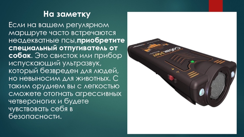 Если на вашем регулярном маршруте часто встречаются неадекватные псы,приобретите специальный