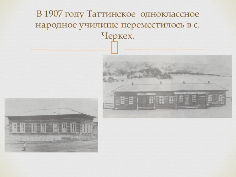 Слайд 12В 1907 году Таттинское одноклассное народное училище переместилось в с. Черкех.