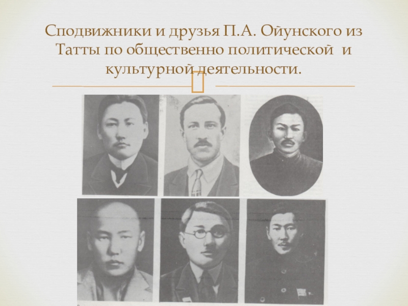 Слайд 19Сподвижники и друзья П.А. Ойунского из Татты по общественно политической и