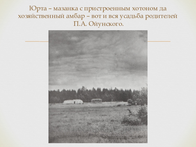 Юрта – мазанка с пристроенным хотоном да хозяйственный амбар – вот и вся усадьба родителей  П.А.
