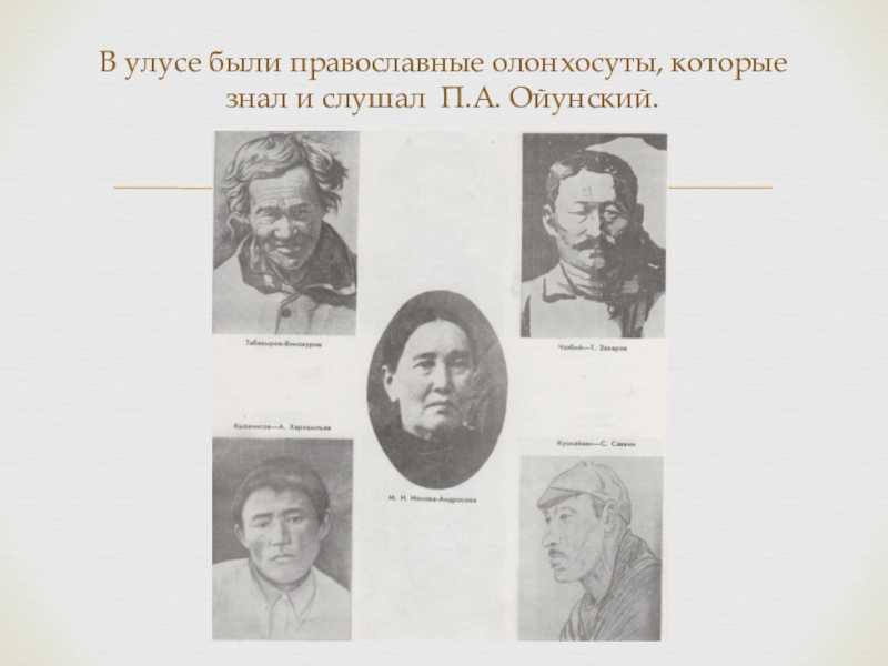 Слайд 9В улусе были православные олонхосуты, которые знал и слушал П.А. Ойунский.