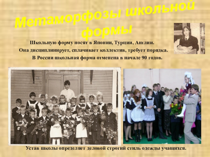 Устав школы определяет деловой строгий стиль одежды учащихся.