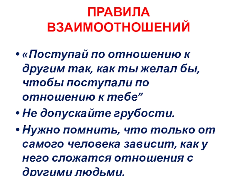 ПРАВИЛА ВЗАИМООТНОШЕНИЙ