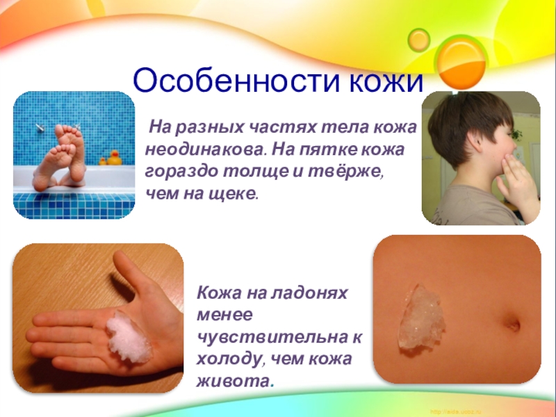 Кожа на ладонях менее чувствительна к холоду, чем кожа живота.