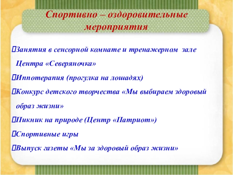 Спортивно – оздоровительные мероприятия