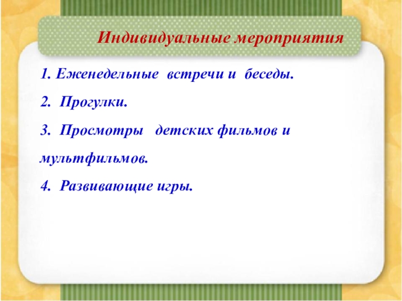 Индивидуальные мероприятия