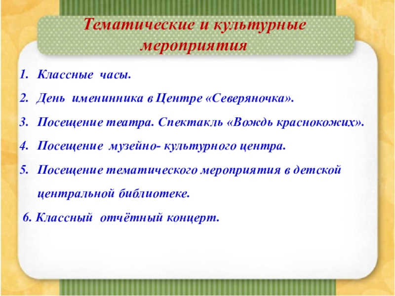 Тематические и культурные мероприятия