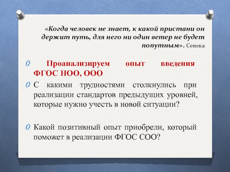 Слайд 3«Когда человек не знает, к какой пристани он держит путь, для