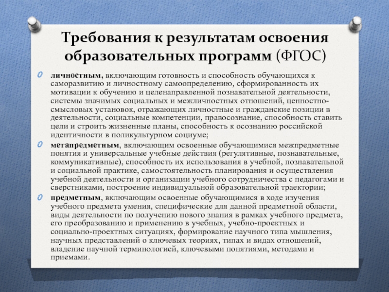 Слайд 9Требования к результатам освоения образовательных программ (ФГОС)