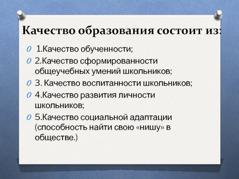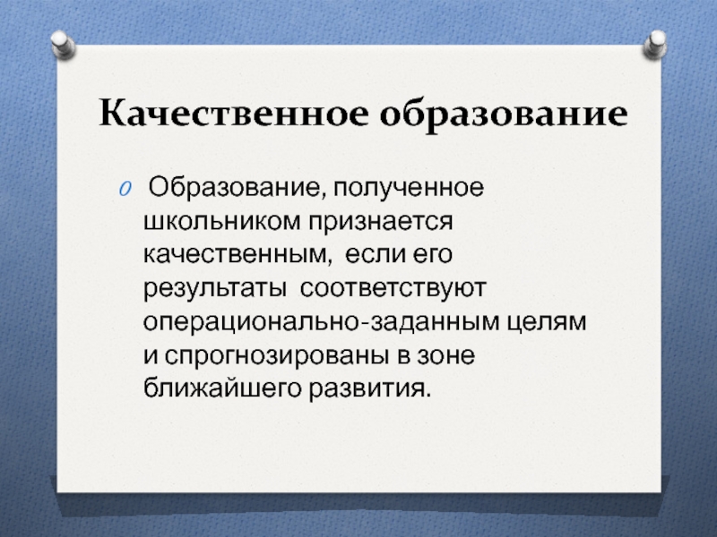 Образование, полученное школьником признается качественным, если его результаты соответствуют