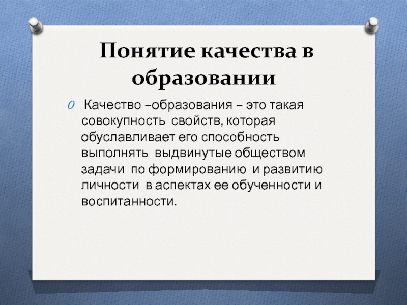 свойств, которая обуславливает его способность выполнять выдвинутые обществом задачи по формированию и развитию личности в аспектах ее обученности и воспитанности.