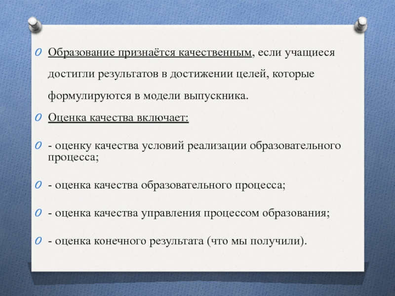 Слайд 18Образование признаётся качественным, если учащиеся достигли результатов в достижении целей, которые