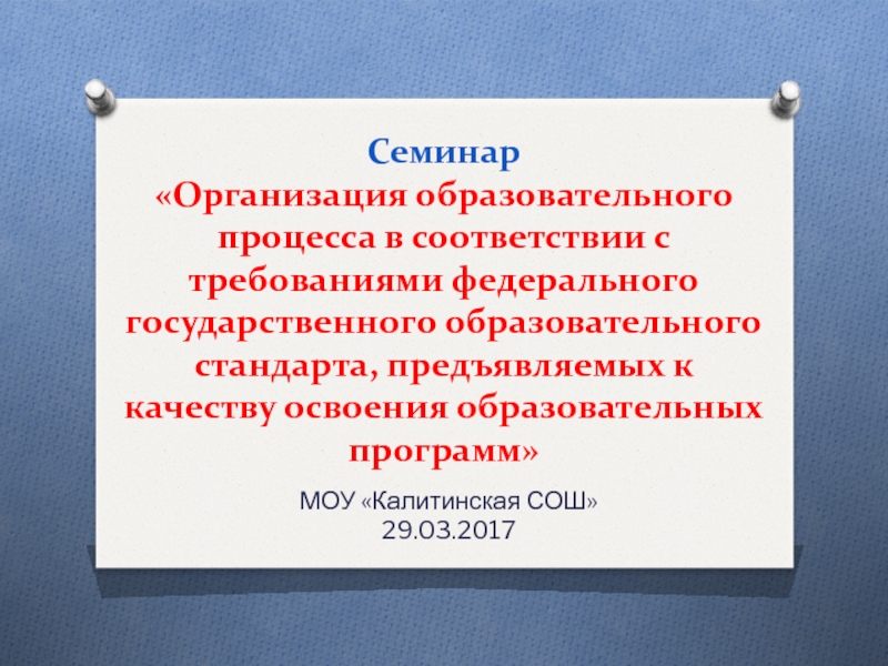 «Организация образовательного процесса в соответствии с требованиями федерального государственного образовательного