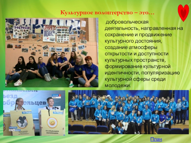 добровольческая деятельность на спортивных, социокультурных, образовательных и иных мероприятиях местного, регионального, федерального и международного уровня.