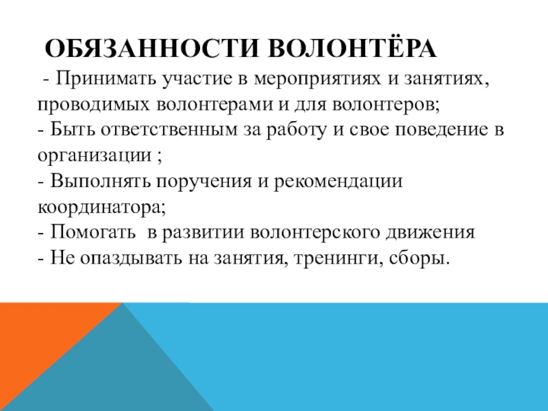 Слайд 8 ОБЯЗАННОСТИ ВОЛОНТЁРА