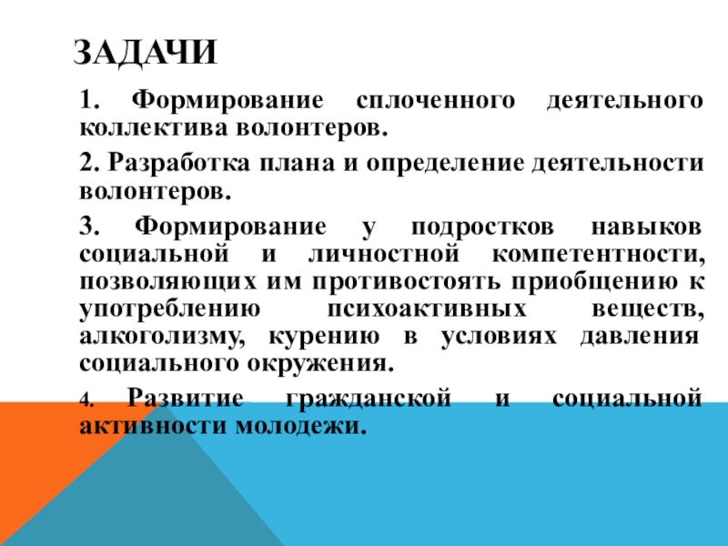 3. Формирование у подростков навыков социальной и личностной компетентности, позволяющих им противостоять приобщению к употреблению психоактивных веществ, алкоголизму, курению в условиях давления социального окружения.