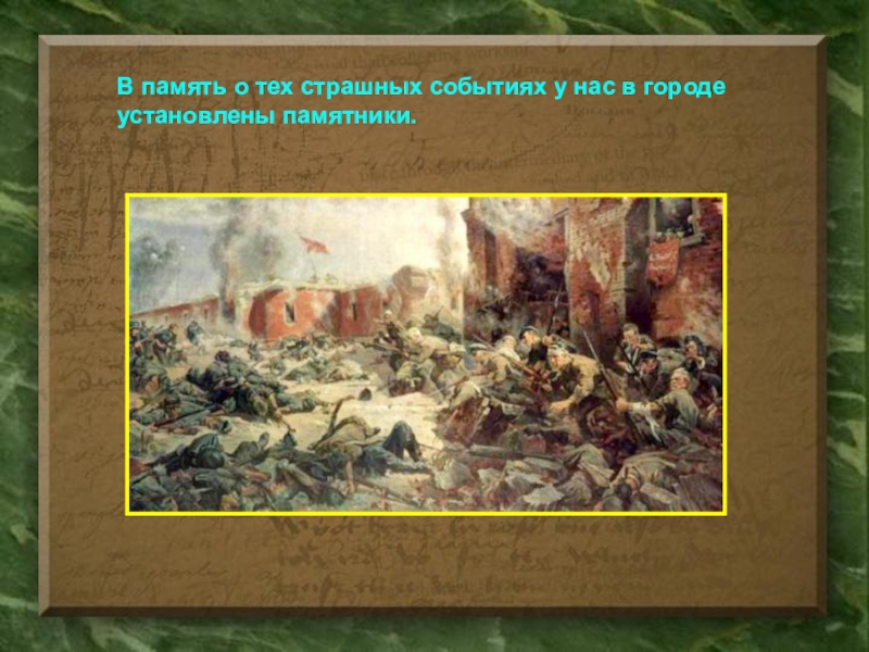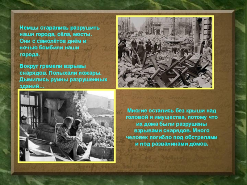 Вокруг гремели взрывы снарядов. Полыхали пожары. Дымились руины разрушенных зданий…