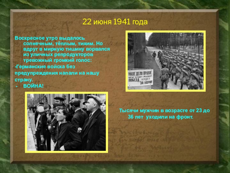 Тысячи мужчин в возрасте от 23 до 36 лет уходили на фронт.