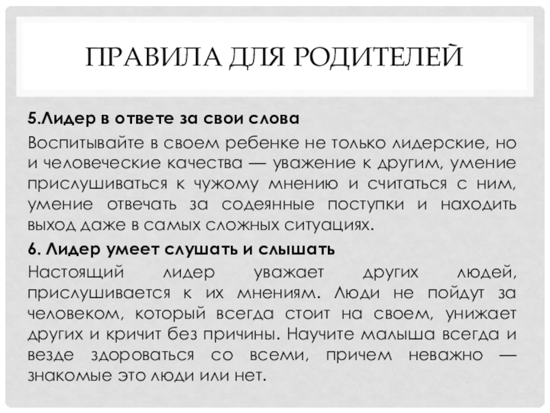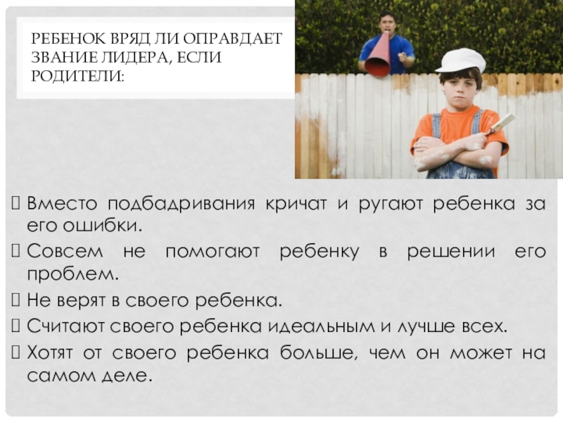 Слайд 18Ребенок вряд ли оправдает звание лидера, если родители: