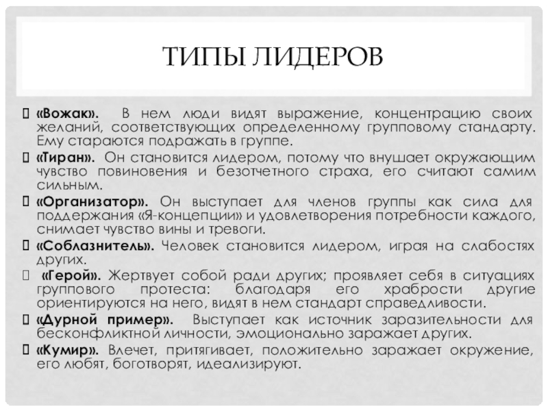 Слайд 8Типы лидеров
