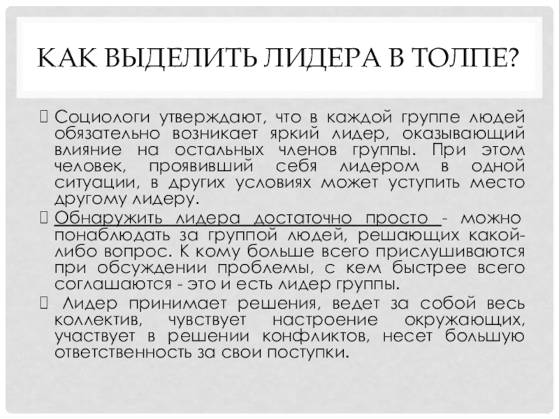 Слайд 5Как выделить лидера в толпе?