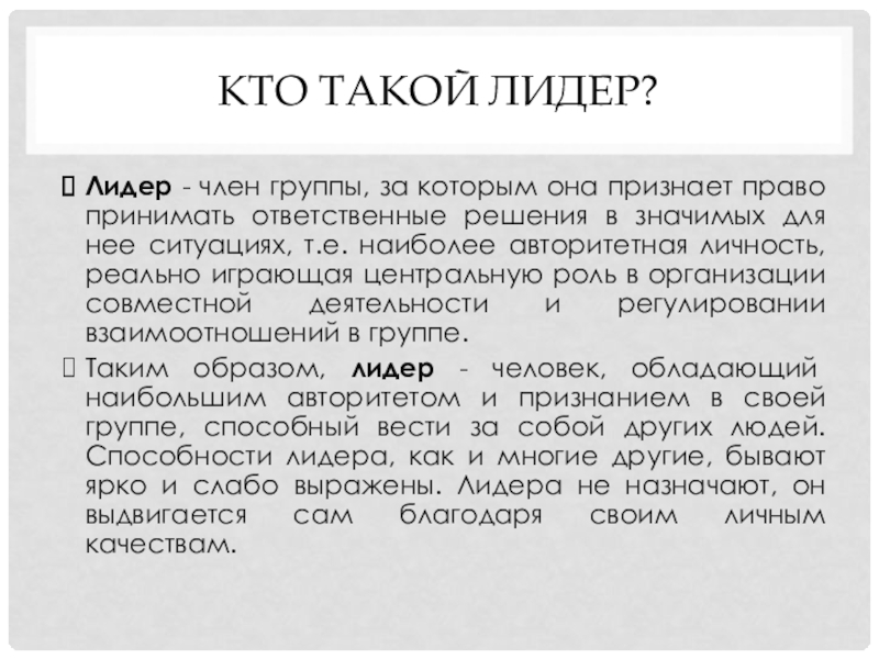 Слайд 4Кто такой лидер?
