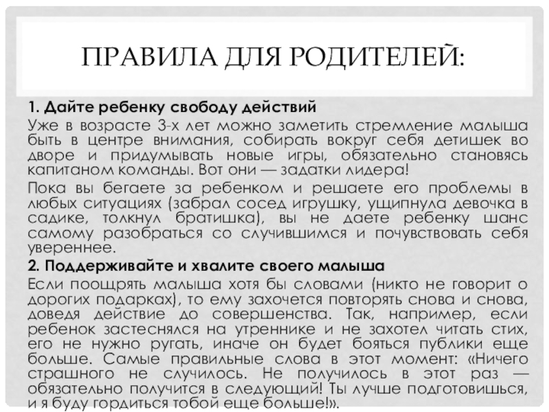 Слайд 14Правила для родителей: