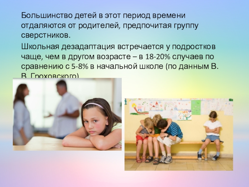 Школьная дезадаптация встречается у подростков чаще, чем в другом возрасте – в 18-20% случаев по сравнению с 5-8% в начальной школе (по данным В.В. Гроховского)