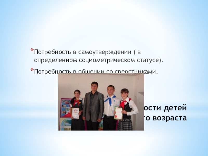 Слайд 26Возрастные особенности детей среднего школьного возраста