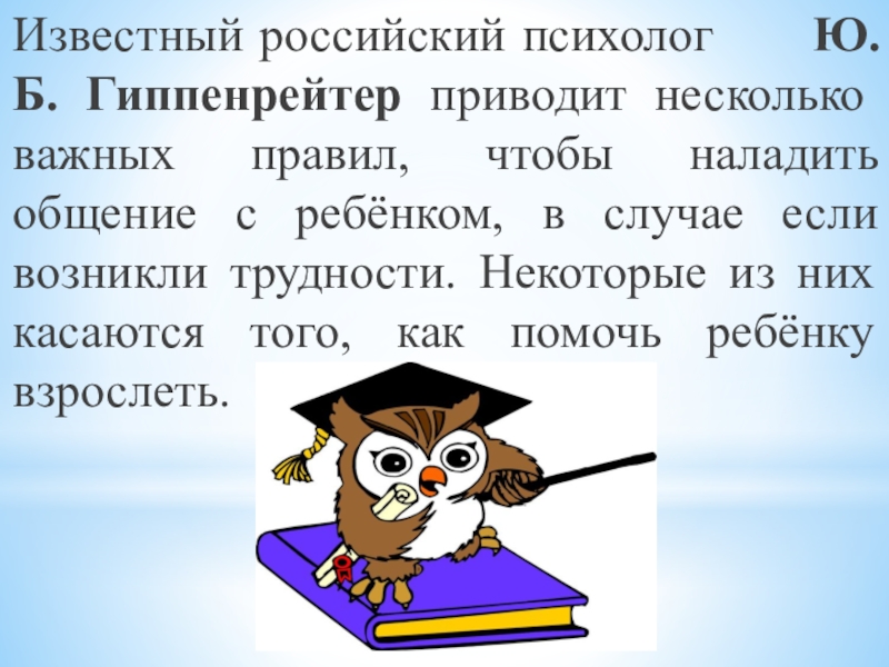 Слайд 21Известный российский психолог Ю.Б. Гиппенрейтер приводит несколько важных правил,
