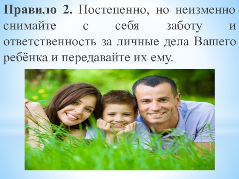 Слайд 23Правило 2. Постепенно, но неизменно снимайте с себя заботу и ответственность