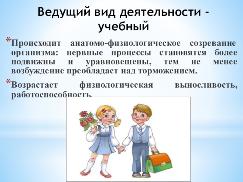 Происходит анатомо-физиологическое созревание организма: нервные процессы становятся