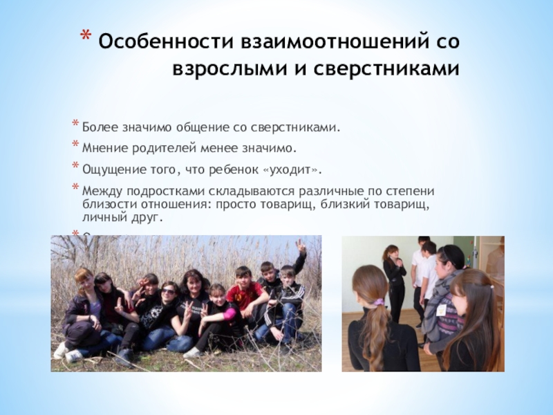 Слайд 35Особенности взаимоотношений со взрослыми и сверстниками