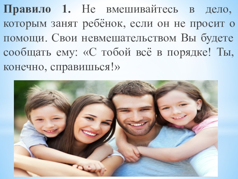 Слайд 22Правило 1. Не вмешивайтесь в дело, которым занят ребёнок, если он
