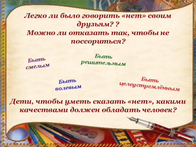 Дети, чтобы уметь сказать «нет», какими качествами должен обладать человек?
