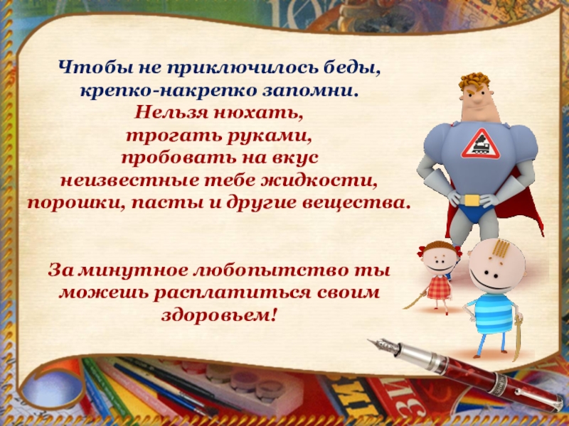 Слайд 11Чтобы не приключилось беды, крепко-накрепко запомни.