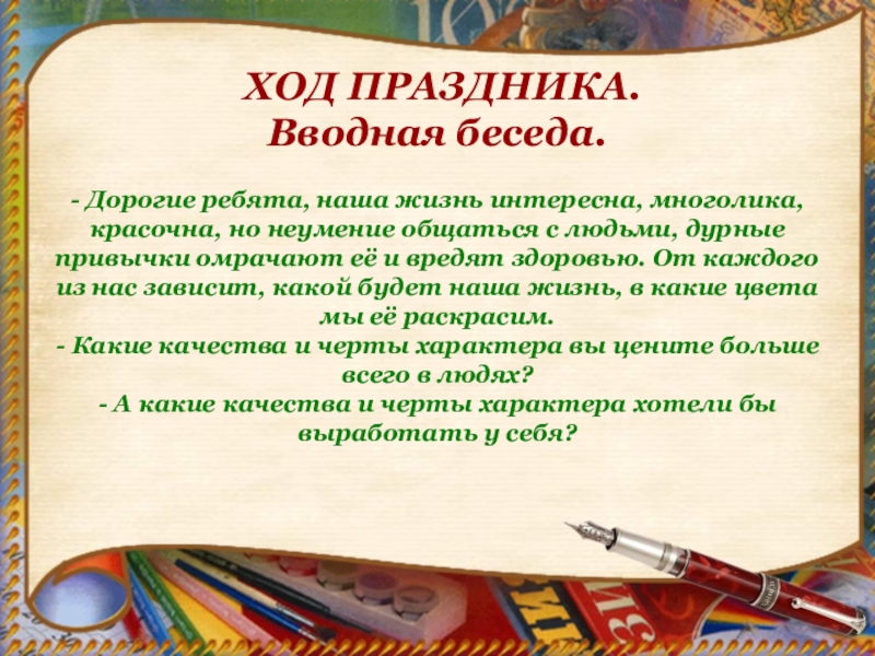- Дорогие ребята, наша жизнь интересна, многолика, красочна,
