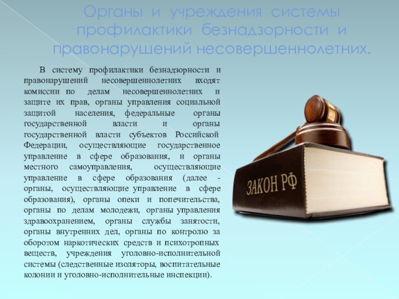 Слайд 2Органы и учреждения системы профилактики безнадзорности и правонарушений несовершеннолетних.