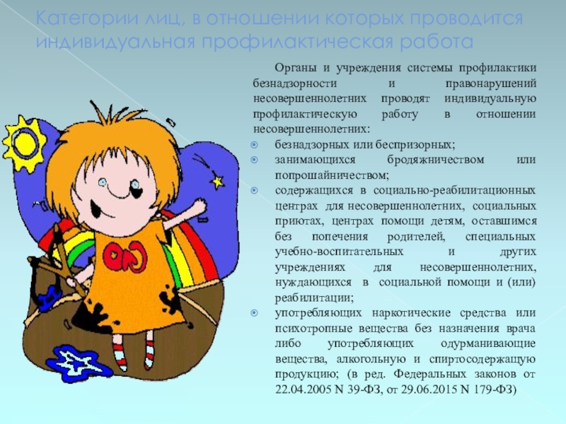 системы профилактики безнадзорности и правонарушений несовершеннолетних проводят индивидуальную профилактическую работу в отношении несовершеннолетних: