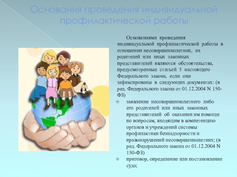 Слайд 5Основания проведения индивидуальной профилактической работы