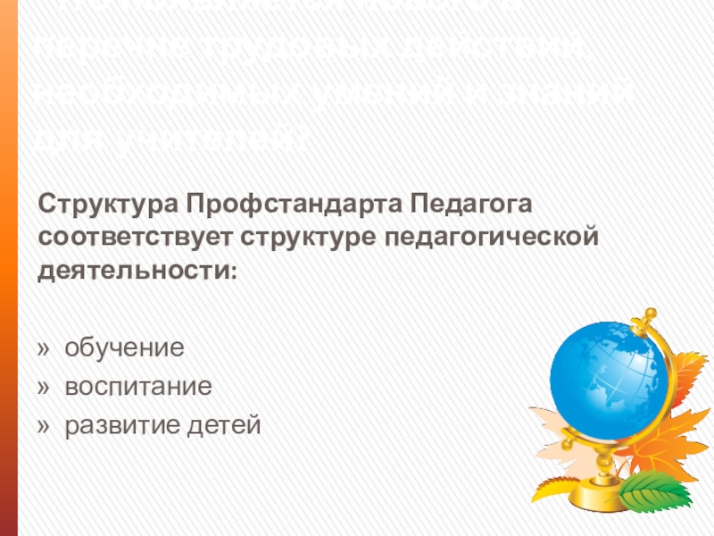 Структура Профстандарта Педагога соответствует структуре педагогической деятельности: