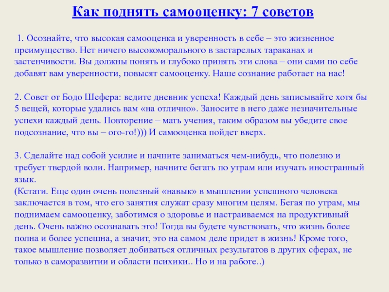 Слайд 21Как поднять самооценку: 7 советов