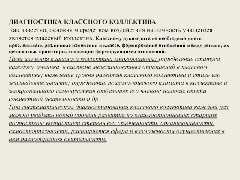 Слайд 11ДИАГНОСТИКА КЛАССНОГО КОЛЛЕКТИВА