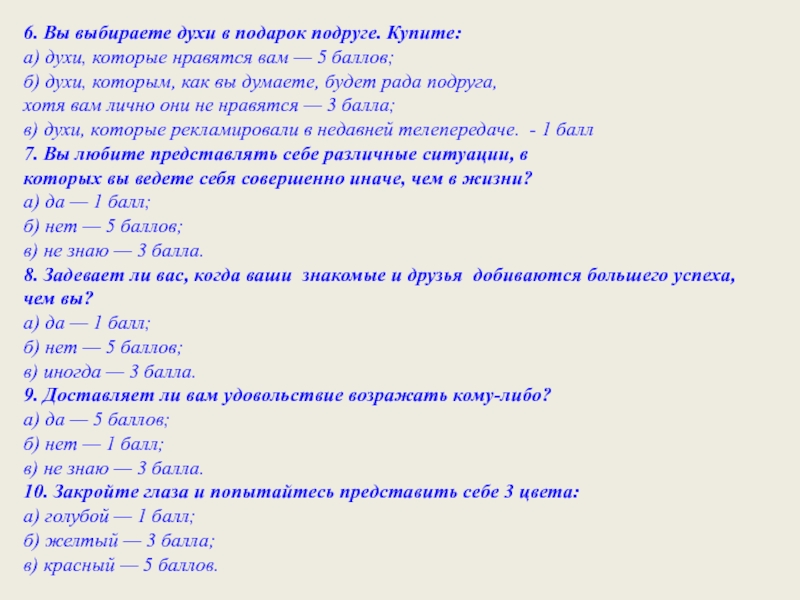 а) постараетесь победить его в остроумии — 5 баллов;