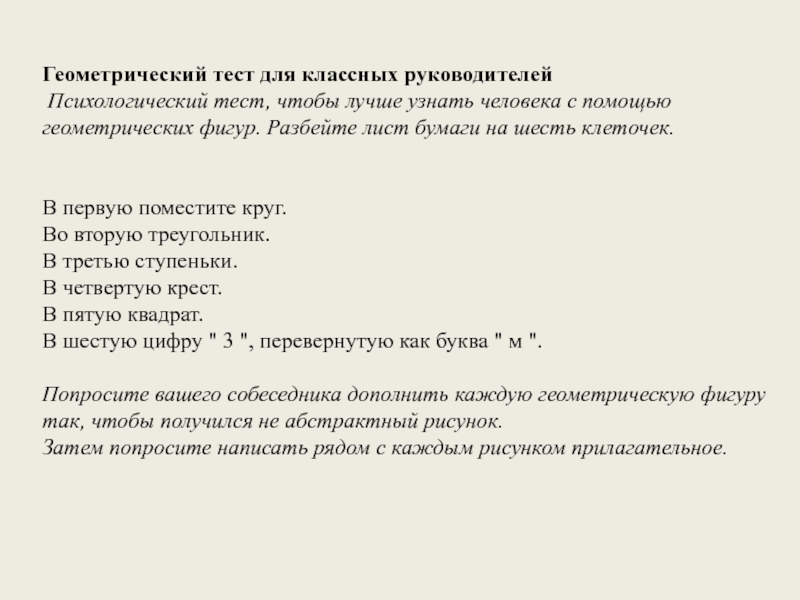 Слайд 9Геометрический тест для классных руководителей