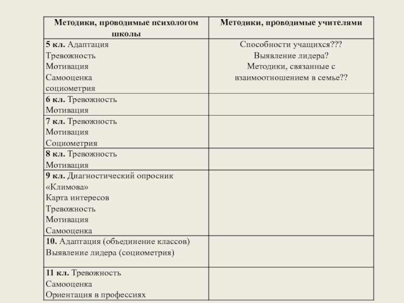 Сводная мониторинговая таблица проведённых диагностик в _____ классе